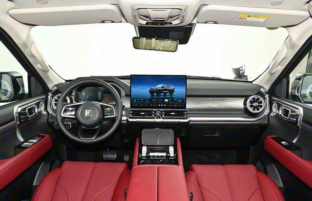 坦克400Hi4-Z的长宽高分别是4964/1970/1905mm,轴距2890mm,当然,还是中大型SUV的定位。车内配备了舒适的皮质座椅,内部填充了大量软性材质,前排座椅带侧翼,坐上去,支撑感和包裹感很明显。后排座椅配备了隐藏式中央扶手,内含杯架,拉下来就可枕手或者放杯。得益于尺寸的设计,前后的乘坐空间都很充足,就算三个成年人坐在后排都不会觉得局促。后备厢的平整度很高,将后排座椅40:60放倒后,能进一步提升储物空间。