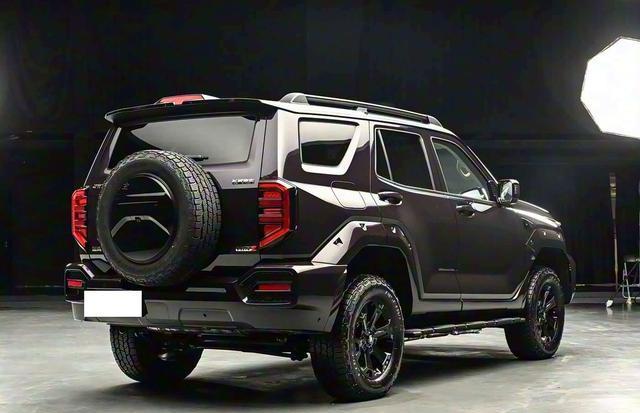 尾部车顶的扰流板,边线处理得倒是很圆润,中间卷曲的部分加入了红色元素,有种较强的视觉冲击力。而下方的分体式尾灯,造型形如耳朵,辨识度很高。背负式备胎,也为它的整体硬派气质增分不少。在尾门的右下方,增加了独特的“Hi4 Z”标志,用于与Hi4-T区分,尾字母“Z”运用了红色元素,看上去别具一格。保险杠区域,黑色与红色混搭,线条的处理依然硬朗平直,很符合它的气质。整体外观,大气硬朗,很符合男同胞的审美需求。